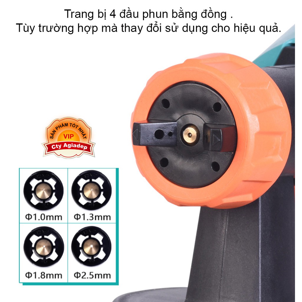 Trang bị 4 đầu phun bằng đồng với các đường kính: 1.0mm, 1.3mm, 1.8mm, 2.5mm. Tùy trường hợp mà thay đổi sử dụng cho hiệu quả.