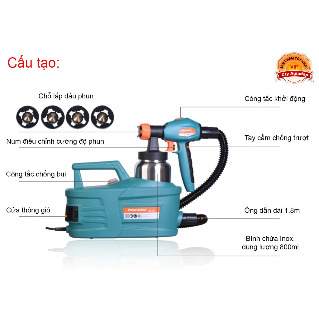 Giới thiệu Máy phun sơn siêu xịn PowerAction 1200W Loại to mạnh mẽ (1 Bình kim loại 1 Bình nhựa 4 đầu phun) SG9620ST