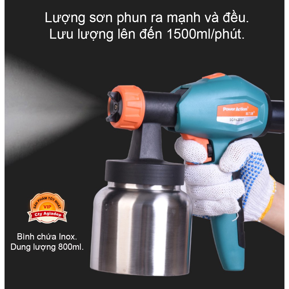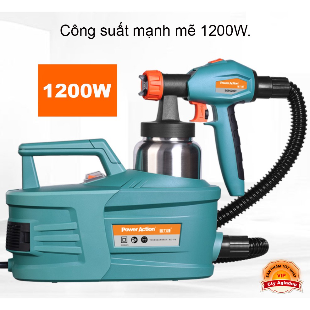 Máy phun sơn siêu xịn PowerAction 1200W Loại to mạnh mẽ (1 Bình kim loại 1 Bình nhựa 4 đầu phun) SG9620ST