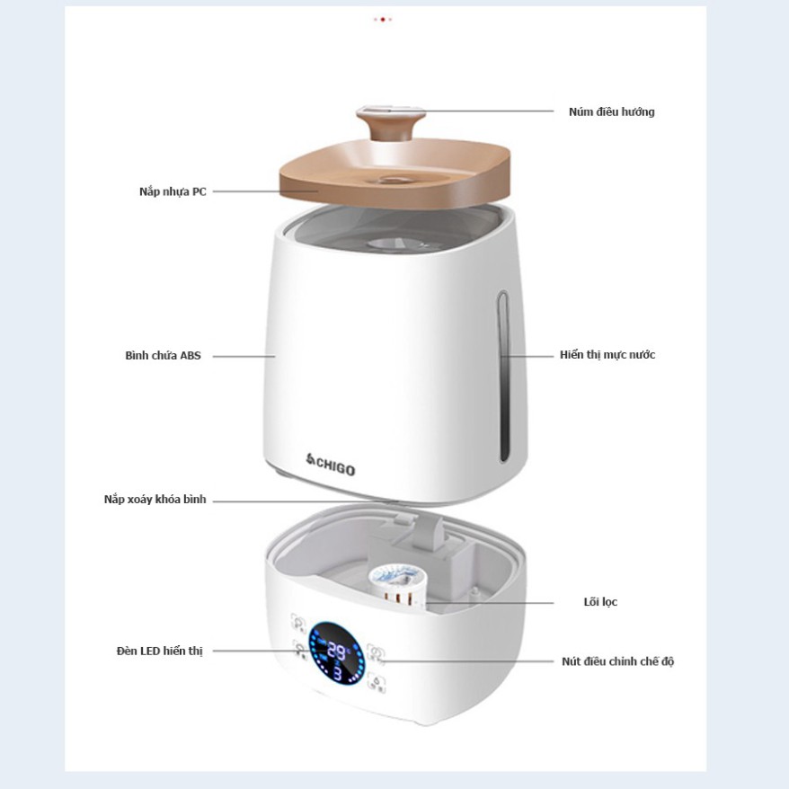 Máy phun sương tạo ẩm chính hãng Chigo 4LSản phẩm chính hãng của Chigo nên có lẽ shop không cần phải nói nhiều về chất lượng và công dụng của sản phẩm nữa ạ.