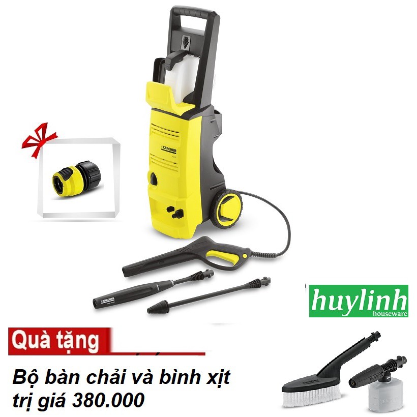 Máy phun áp lực Karcher K3 450 giúp làm sạch xe và vệ sinh máy móc, công xưởng, sân vườn.[Sản phẩm tặng kèm Bộ bàn chải và đầu phun hóa chất Car Kit. Khách hàng không lấy quà tặng, giảm ngay 250.000. Liên hệ shop để biết chi tiết]