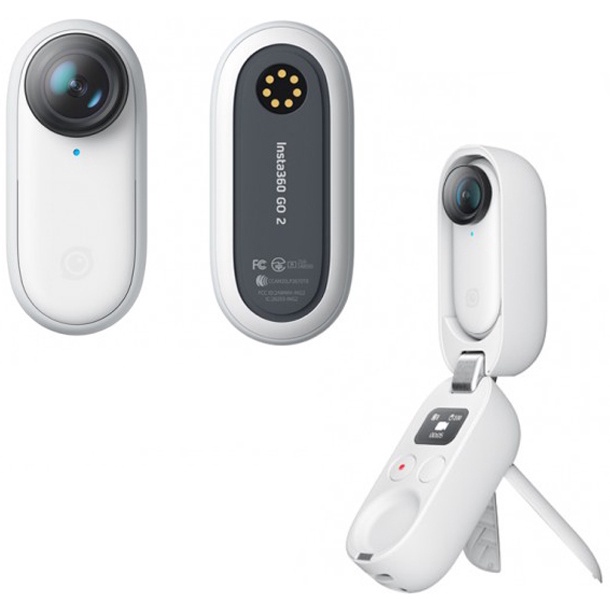 - Insta360 GO 2 ghi lại video, âm thanh và hình ảnh bên trong với bộ nhớ trong 32GB. Khi được kết nối với điện thoại của bạn, video GO 2 sẽ được tự động chuyển qua ứng dụng đồng hành.