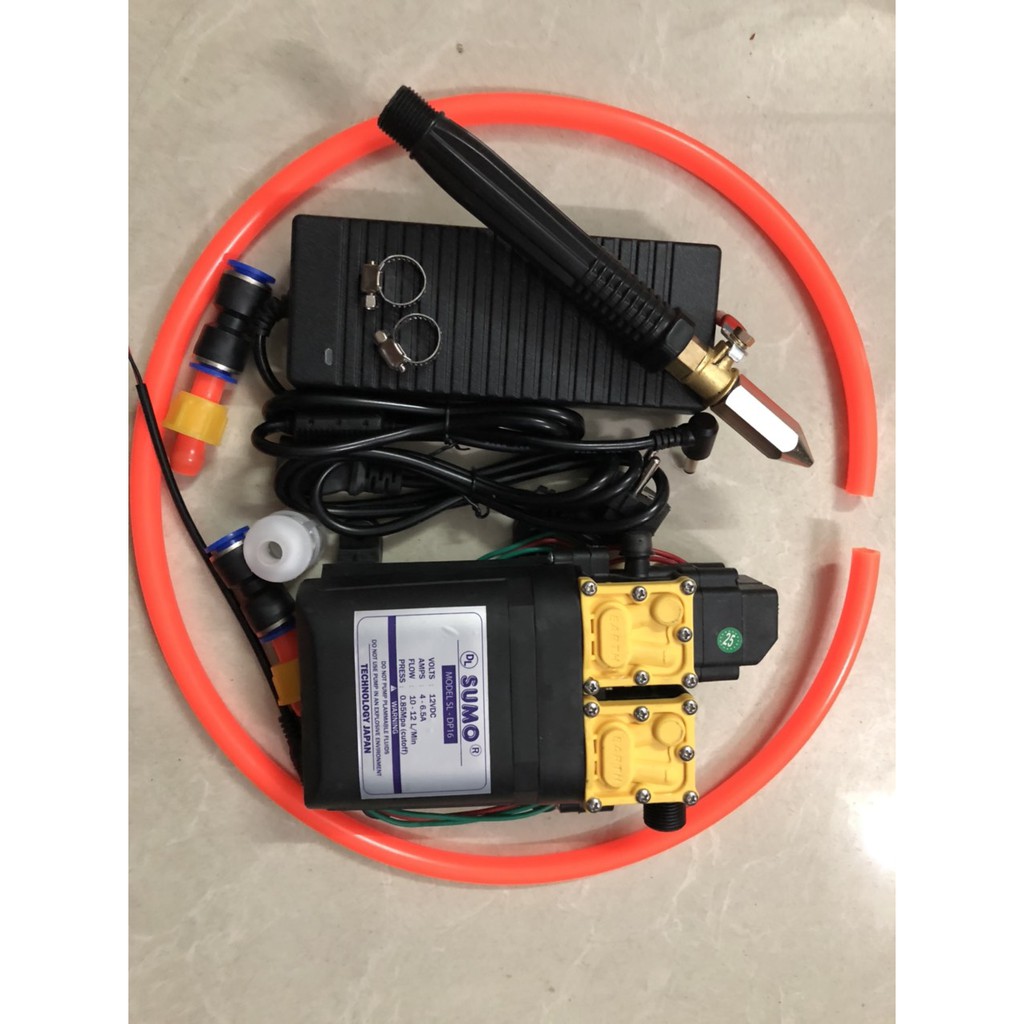 MÁY RỬA XE BƠM ĐÔI CỰC MẠNH SUMO VỚI 5M DÂY ÁP LỰC VÀ NGUỒN ADAPTER 12V10A.AN TOÀN,KHÔNG RÒ RỈ ĐIỆN