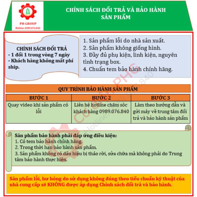 - Đổi trả mới trong vòng 7 ngày nếu lỗi nhà sản xuất (Chi phí do shop chịu hoàn toàn)