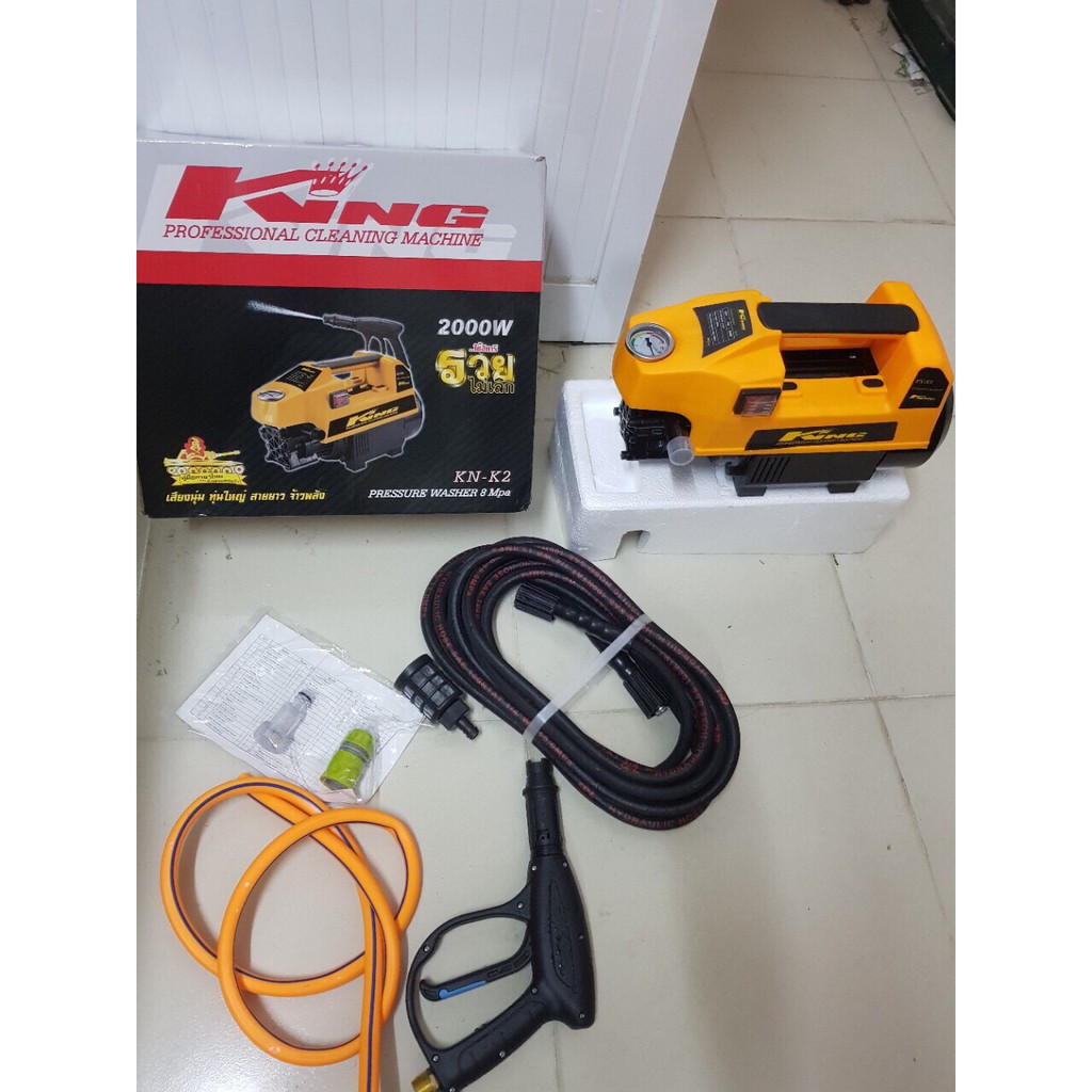 MÁY RỬA XE KING 2000W THAILANDMáy rửa xe KING 2000W thailand máy đẹp nhỏ gọn chất lượng hàng đầu,lõi máy 100% được làm bằng đồng cho độ bền cao,rất tiện lợi cho việc di chuyển:rửa ôtô,xe máy đặc biệt máy có thể vệ sinh điều hoà, tưới cây, xịt rửa tường nhà...