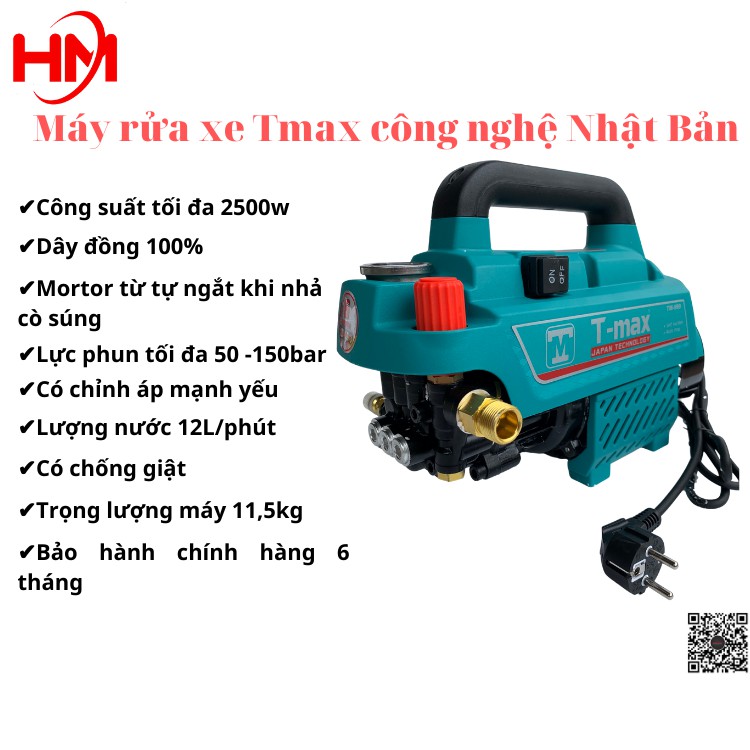 Máy Rửa Xe Mini 2500W Tmax Công nghệ Nhật Bản Bảo Hành 6 Tháng Cam Kết Dây Đồng 100%