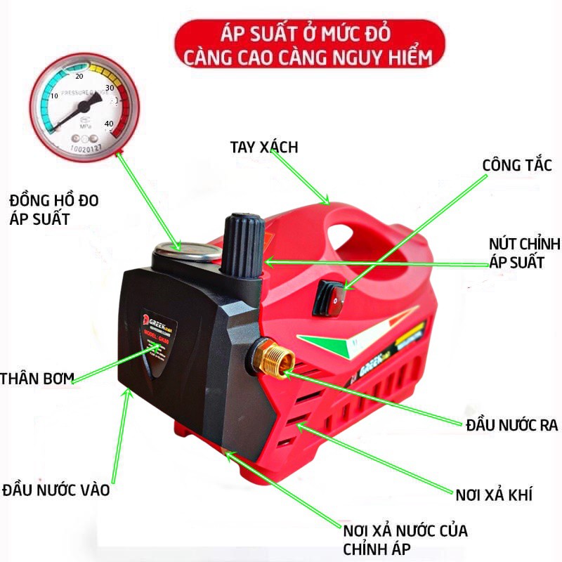 Máy Rửa Xe Greekman - Bảo Hành 2 Năm Cháy Nổ Của Nhà Sản XuấtMÁY XỊT RỬA ÁP LỰC CAO Greekman