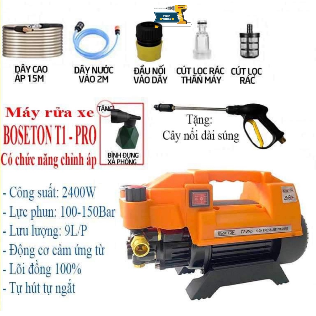 Máy rửa xe mini nội địa Mỹ 2400w Boseton, máy rửa xe gia đình