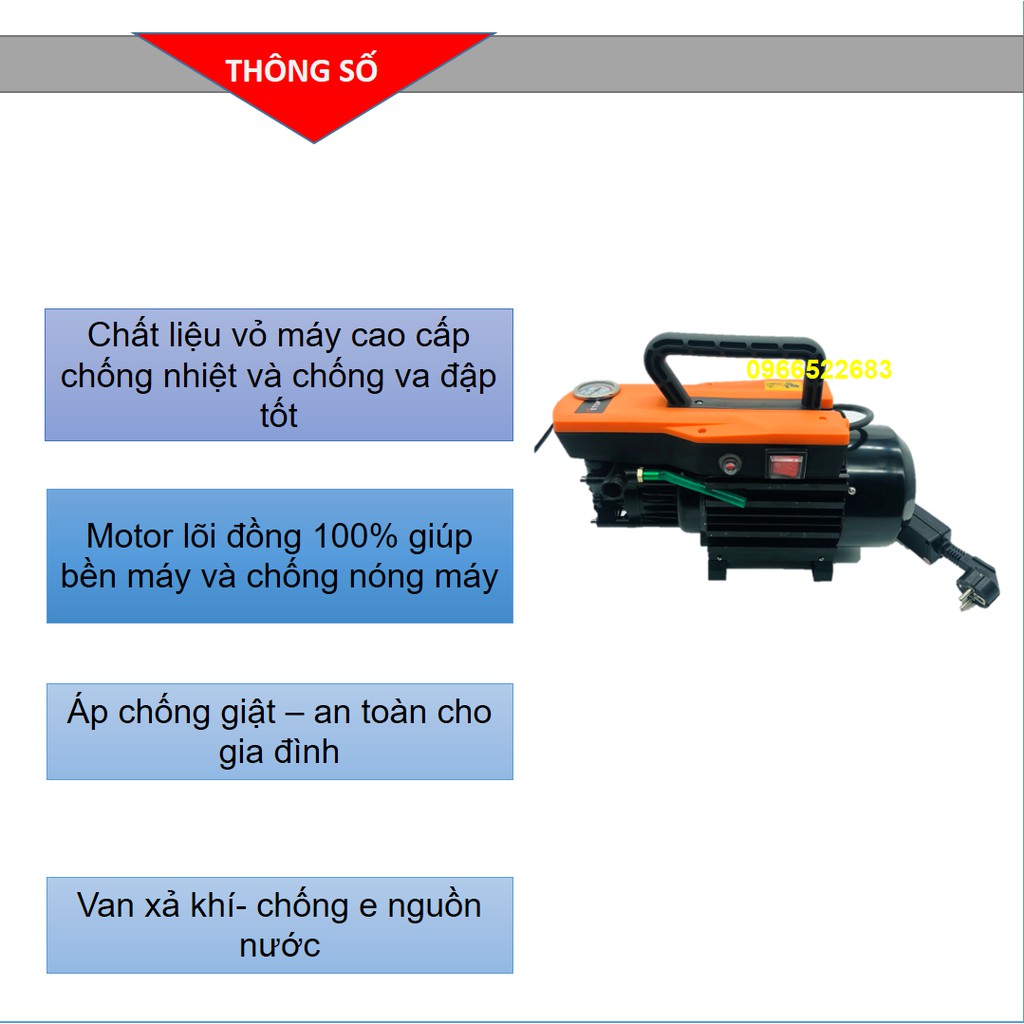 🔅 Máy rửa xe gia đình có kích thước nhỏ gọn, ưa nhìn nhưng vô cùng mạnh mẽ với công suất 1800W.