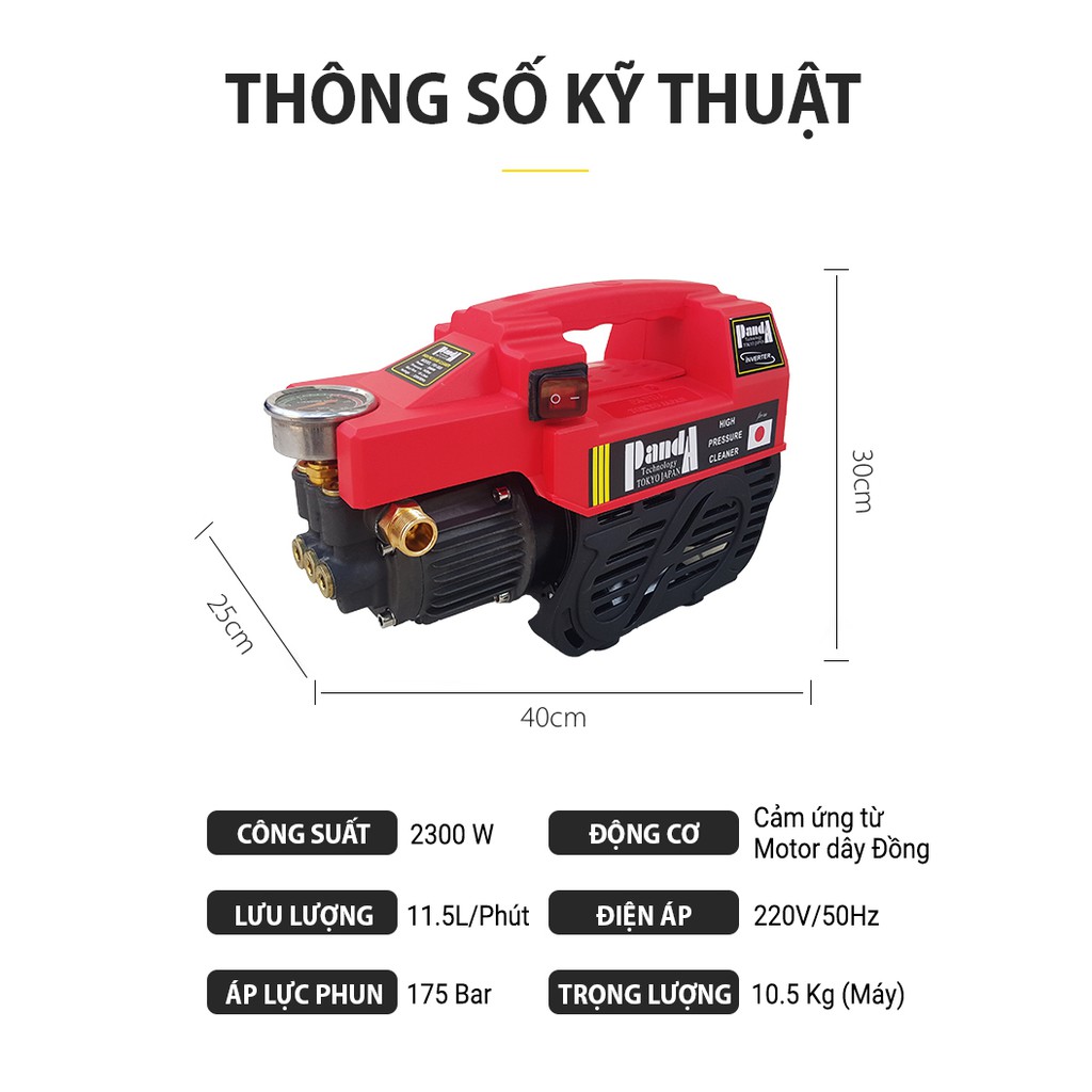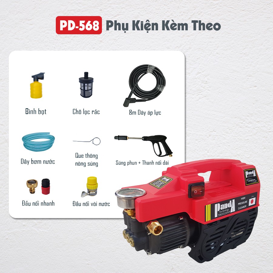 Nhà cửa & Đời sống > Dụng cụ & Thiết bị tiện ích > Dụng cụ > Máy rửa áp lực nước || Máy rửa xe PANDA PD568 công suất 2300W, Motor từ dây Đồng dùng cho gia đình phun rửa sân, ô tô, xe máyCòn hàng