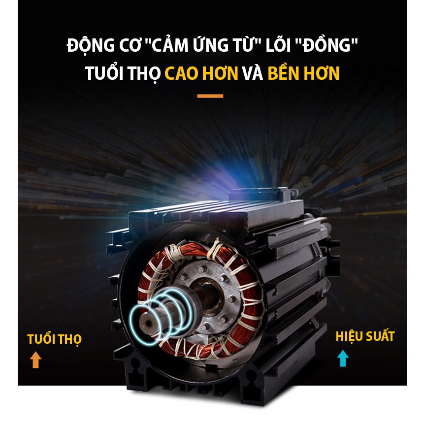 - Động cơ 100% dây đồng loại bản to giúp máy hoạt động bền bỉ và ổn định hơn so với các dòng máy thông thường khác