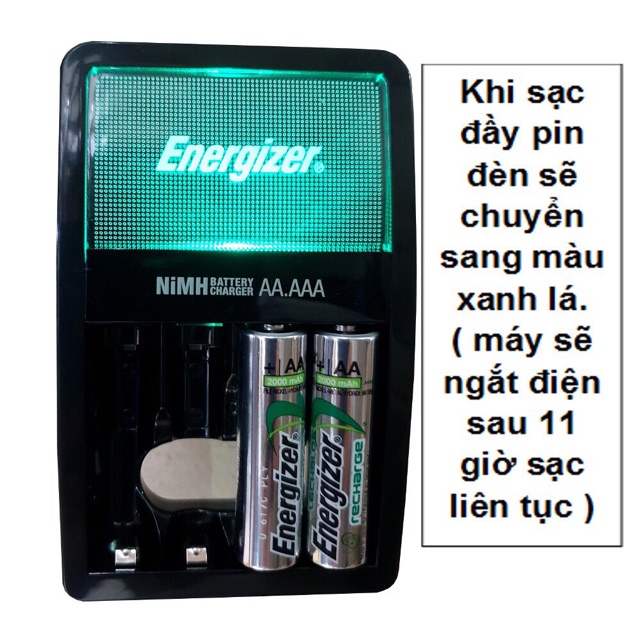 - Với bộ sạc Energizer bạn có thể nhanh chóng sạc đầy cho pin sạc AA 2300 mAh trong khoảng 9h, pin sạc AA 2000mAh 8h, 1500mAh khoảng 6h,1300mAh là 5h. Ngoài ra, pin sạc AAA 500mAh là khoảng 4h và 6h cho pin sạc AAA 700mAh.