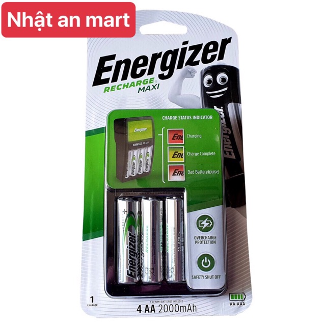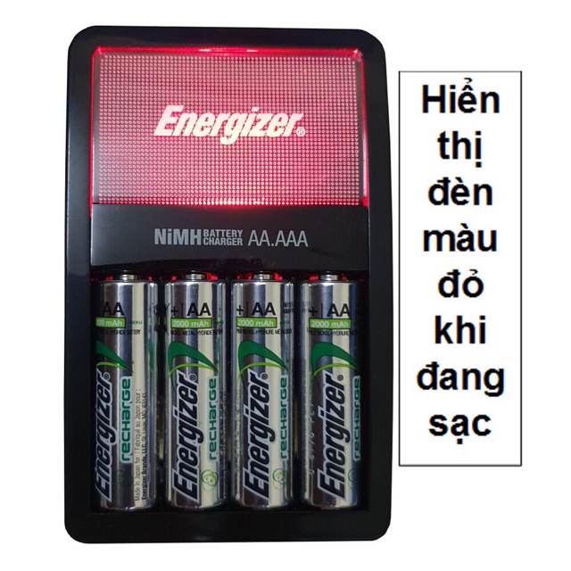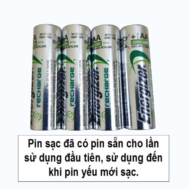 - Bộ sản phẩm bao gồm một bộ sạc và 4 viên pin sạc AA Energizer có dung lượng lớn lên đến 2000mAh cho thời gian sử dụng bền bỉ.