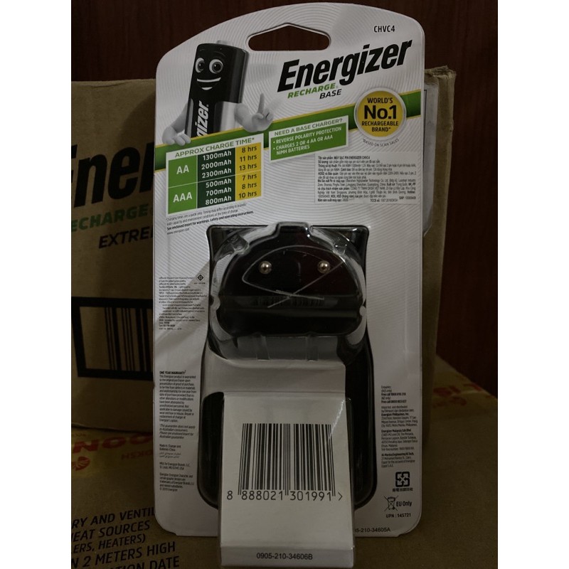- Với bộ sạc Energizer bạn có thể nhanh chóng sạc đầy cho pin sạc AA 2300mAh trong khoảng 9h, pin sạc AA 2000mAh 8h, 1500mAh khoảng 6h,1300mAh là 5h. Ngoài ra, pin sạc AAA 500mAh là khoảng 4h và 6h cho pin sạc AAA 700mAh.