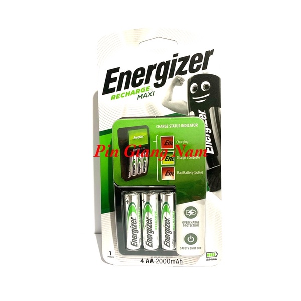 - Máy sạc Energizer CHVCM4 kèm sẵn 4 pin AA 2000mAh.