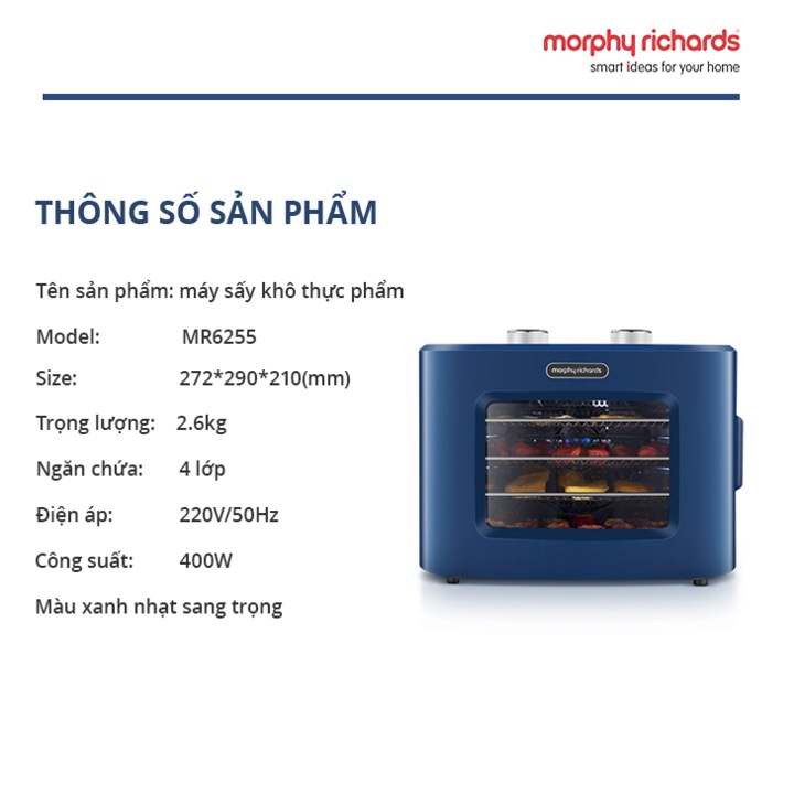 Máy sấy thực phẩm Morphy Richards MR6255 Công suất: 400W có 4 khay sấy riêng- Bảo hành 12 tháng