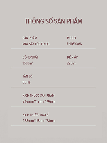 - Công suất tối đa 1600W giúp sấy khô nhanh hơn, tiết kiệm điện năng