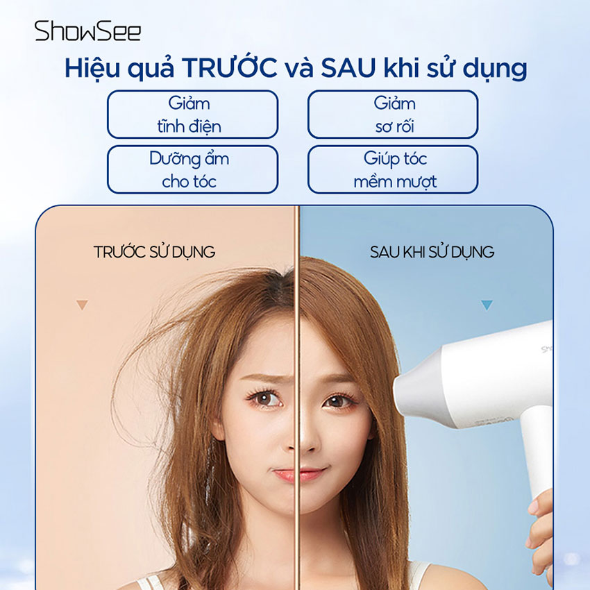 - Tính năng sấy ion giúp bảo vệ tóc khỏi khô xơ và hư tổn, đồng thời làm mượt tóc
