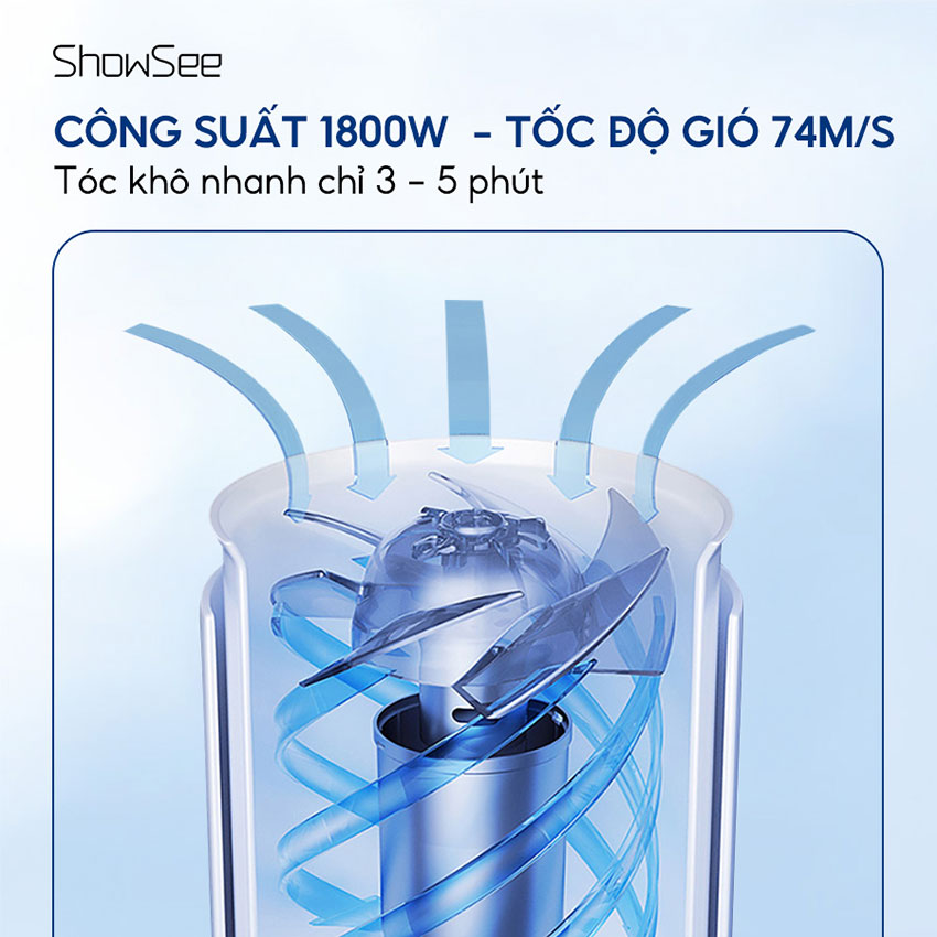 - Công suất 1800W cùng 3 mức nhiệt sấy : mát 30°C, ấm 55°C, nóng 60°C