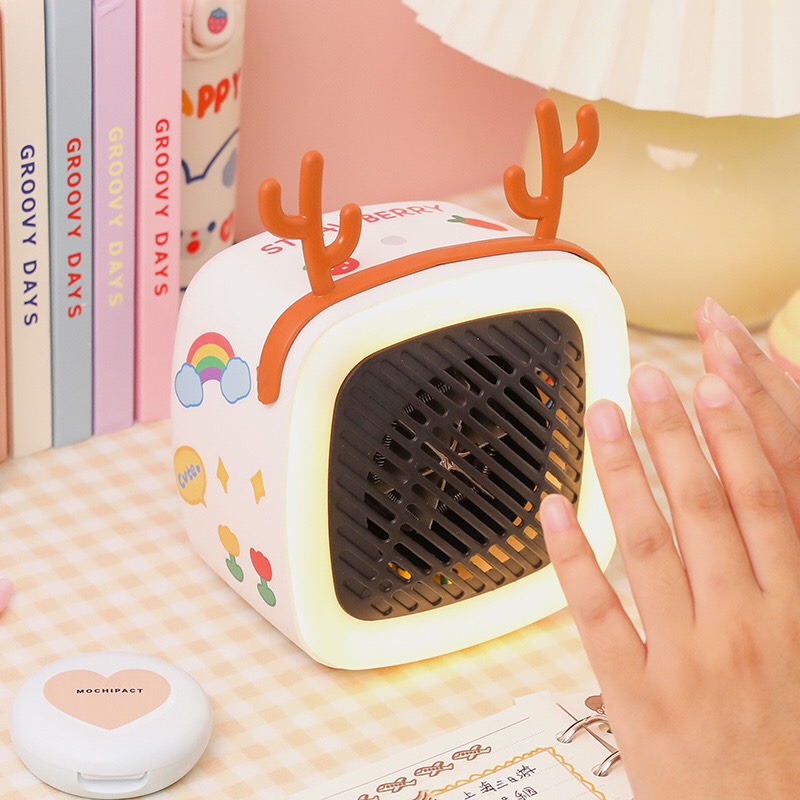 Giới thiệu Máy Sưởi Ấm Mini Để Bàn Chạy Bằng Điện Kèm 2 Tai Và Sticker Ngẫu Nhiên Trang Trí