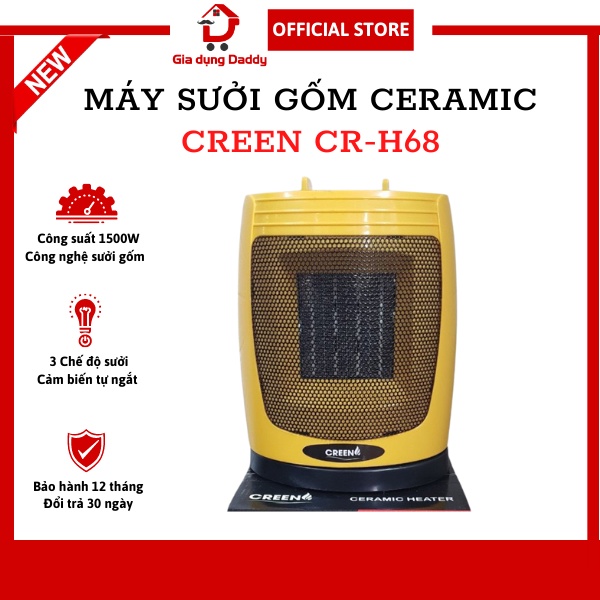 Giới thiệu Máy sưởi gốm ceramic Creen CR-H68, Công suất 1500W, Máy sưởi ấm cho trẻ nhỏ, Bảo hành 12 tháng, Giao màu ngẫu nhiên