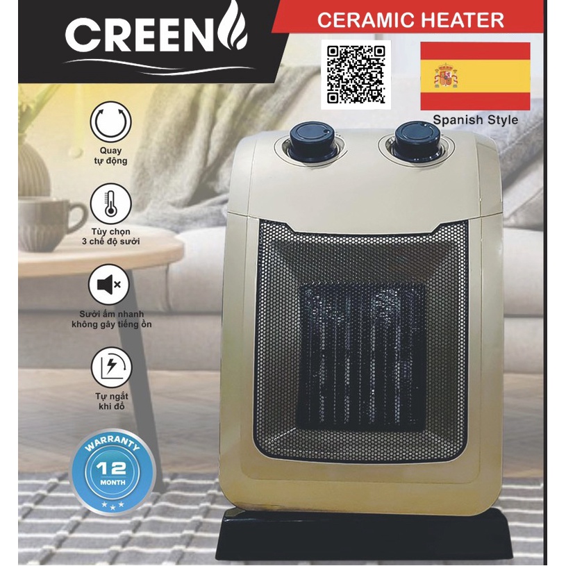 Máy Sưởi Gốm Ceramic Creen CR-H99 2000W New 2021 - Hàng Chính Hãng Bảo Hành 12 Tháng