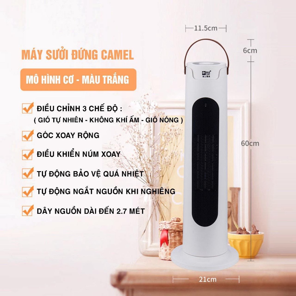 Quạt sưởi hoạt động với công suất 1.200W cùng chế độ đối lưu nhiệt sẽ luân chuyển khí nóng đều khắp phòng, cho diện tích sưởi ấm