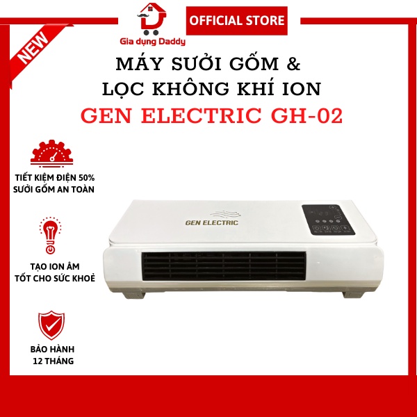 - Máy sưởi gốm Gen Electric GH-02 tạo và bổ sung ion âm giúp lọc sạch không khí, xông hơi.
