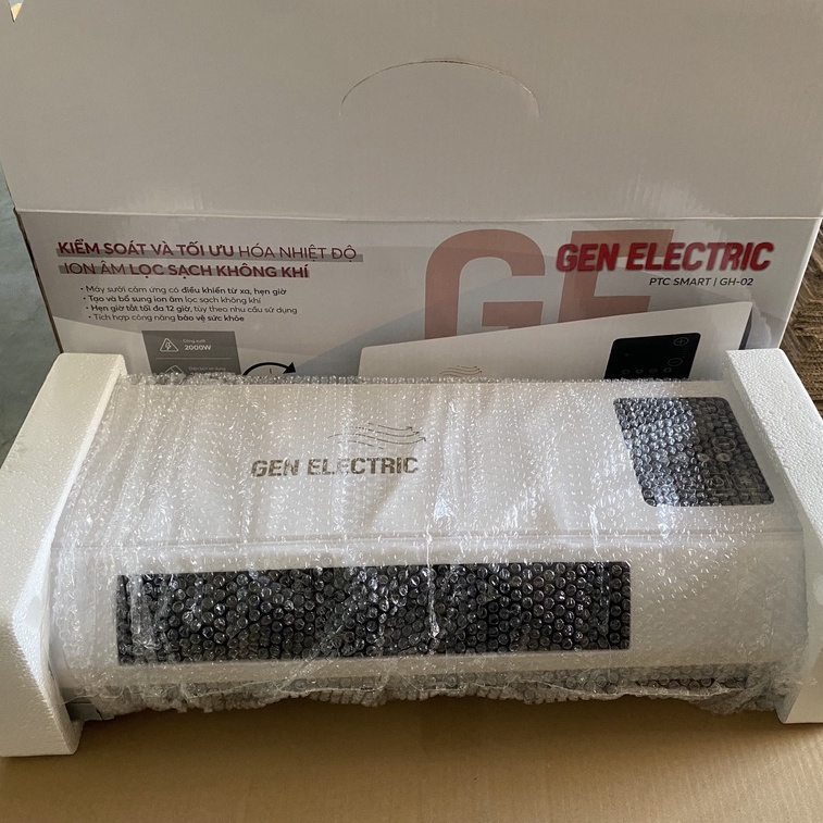 Giới thiệu Máy sưởi gốm Gen Electric GH-02, Lọc không khí ION âm, Máy xông hơi nhà tắm 2000W An toàn sức khoẻ, Bảo hành 12 tháng