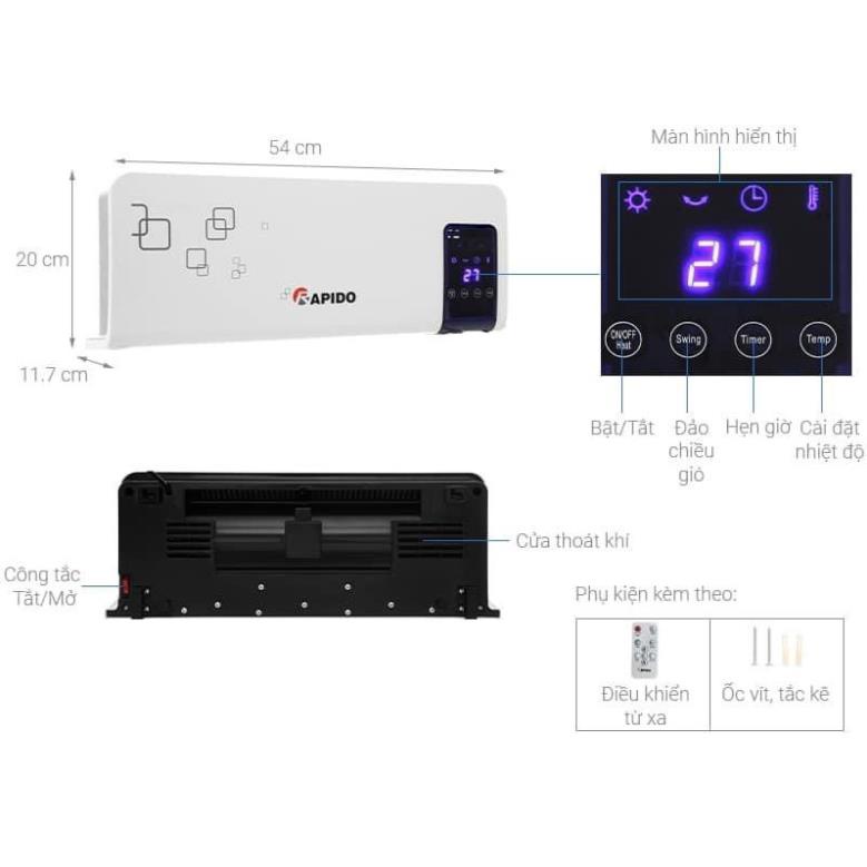 Thiết Bị Điện Gia Dụng > Thiết bị điện gia dụng lớn > Máy sưởi || Máy sưởi gốm RAPIDO cảm ứng RCH2000D Điều khiển điện tử, điều khiển từ xa BH chính hãng 12 thángCòn hàng