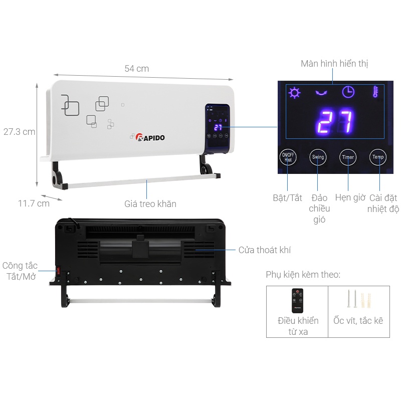 Thương hiệu: Rapido | Xem thêm các sản phẩm Thiết bị sưởi ấm của RapidoMô tả ngắn