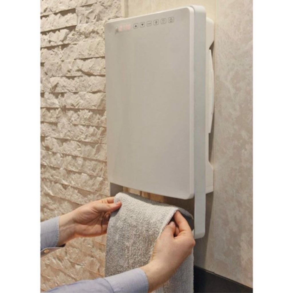 - Máy sưởi Steba BS 1800 Touch được trang bị thanh treo khăn và 4 móc bổ sung ở mặt sau của thanh treo giúp không gian nhà tắm gọn gàng hơn và tiện lợi khi cần hong khô, khử khuẩn cho khăn tắm.