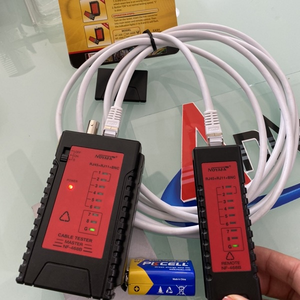 Máy test cáp mạng NF-468B Noyafa chính hãng với chức năng test cáp mạng cat5,cat6 chuẩn RJ45, cáp thoại chuẩn RJ11 và cáp đồng trục BNC cho kết quả chính xác ngay tức thì thông qua hệ thống đèn báo hiển thị trên máy