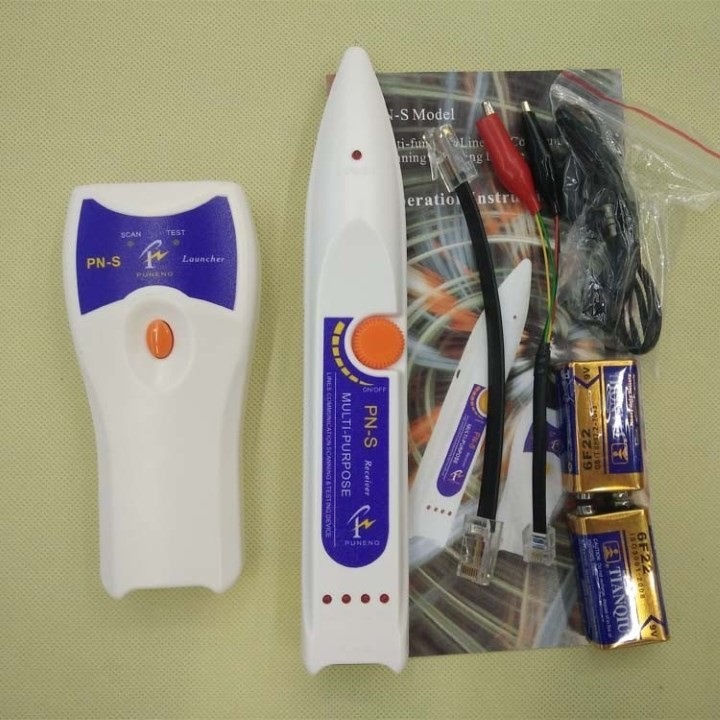 Máy test mạng, dò dây trong tường PN-S: Máy test dò dây Multi Purpost PN-S – Theo dõi cáp được thiết kế để xác định và theo dõi dây hoặc cáp trong một nhóm mà không làm hỏng cách điện . Đối với đường dây điện thoại, nó có thể xác định một số trạng thái trong dòng , và thuận tiện hơn trong việc lắp đặt , gỡ lỗi, duy trì đường dây điện thoại. Thiết bị có 1 bộ gửi và một bộ nhận trong việc giúp thuận tiện cho việc thoe dõi kiểm tra xác định dây.Các tính năng: