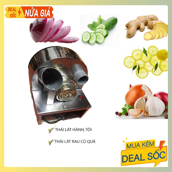 Thiết Bị Điện Gia Dụng > Đồ gia dụng nhà bếp > Máy chế biến thực phẩm & Xay thịt || Máy thái hành mô tơ điện bằng chất liệu INOX + tặng kèm 3 lưỡi daoCòn hàng