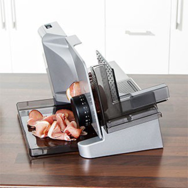- Các tính năng đặc biệt: Metallausführung, ECO-Motor, Wellenschliff- und glattes Schinken- / Aufschnittmesser, Schrägstellung, Sicherheits-Moment- und Dauerschalter.