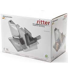 - Máy thái lát thực phẩm 515000 RITTER E16 được sản xuất trên dây chuyền sản xuất và công nghệ Đức. Thiết kế nhỏ gọn và tiện dụng, máy cắt lát mỏng này dễ dàng xử lú tất cả các công việc cắt thái lát thực phẩm một cách nhanh chóng nhẹ nhàng với kết quả cắt hoàn hảo và rất an toàn. Máy có thể dùng cắt rất nhiều nhóm thực phẩm khác nhau: thịt, rau củ quả, phô mai, bánh mỳ… Một sản phẩm thiết thực cho mọi nhà bếp.
