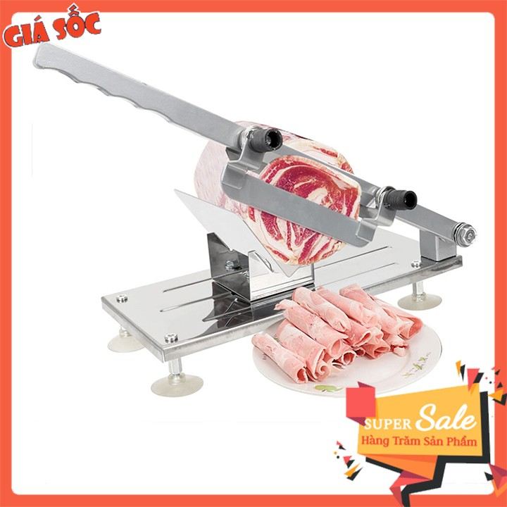 + Máy cắt thịt bằng tay được chế tạo bằng vật liệu inox cao cấp. Máy chuyên dùng thái thịt bò, thịt lợn, thịt cừu, thịt dê, thịt bê, thịt trâu... đông đá.