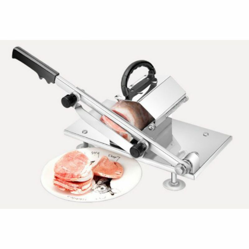 Máy cắt thịt bằng tay được chế tạo bằng vật liệu inox cao cấp 304. Máy chuyên dùng thái thịt bò, thịt lợn, thịt cừu, thịt dê, thịt bê, thịt trâu... đông đá.Ngoài ra máy còn thái được củ quả như khoai tây, cà rốt, dưa chuột, thịt hun khói, giò chả....Với kiểu dáng nhỏ gọn, chất liệu 100% inox cao cấp, nhìn máy rất bắt mắt và thẩm mỹ cho các đầu bếp sử dụng. Điểm quan trọng nhất là lát cắt thịt rất sắc ngọt như các máy thái bằng điện, nhưng chuẩn mực và tinh tế hơn khi có bàn tay thái của người chế biến.