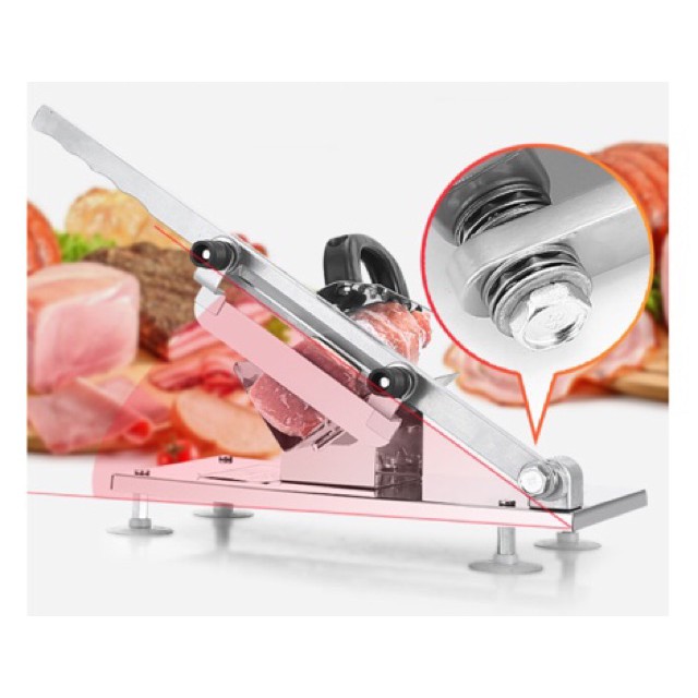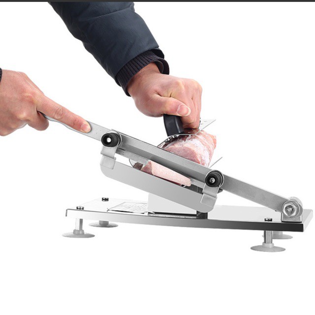 + Máy cắt thịt bằng tay được chế tạo bằng vật liệu inox cao cấp. Máy chuyên dùng thái thịt bò, thịt lợn, thịt cừu, thịt dê, thịt bê, thịt trâu... đông đá.