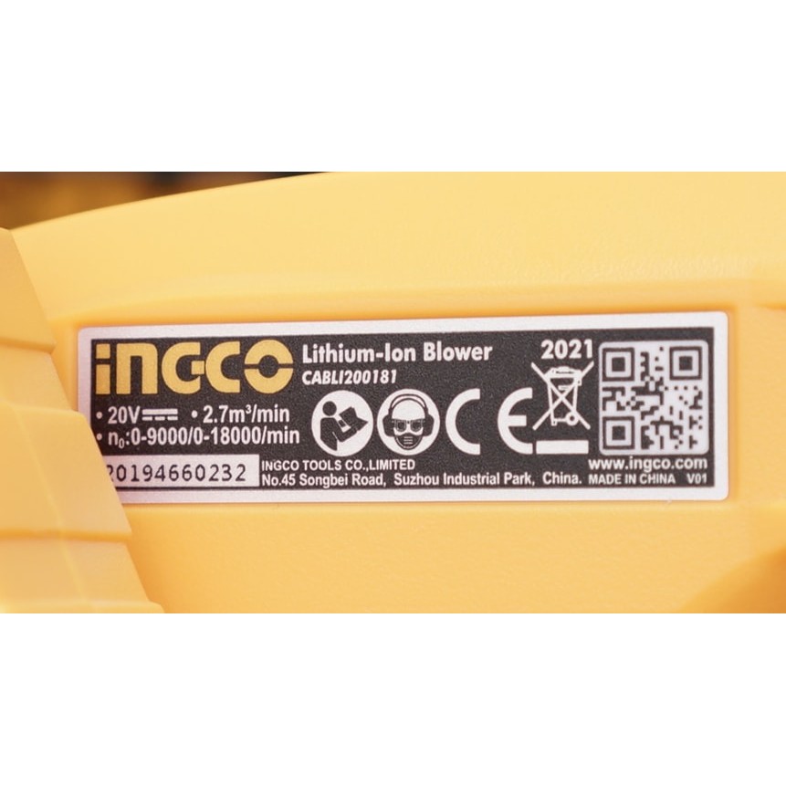 Máy thổi bụi dùng pin Lithium 20v Ingco CABLI200181Thông số kĩ thuật