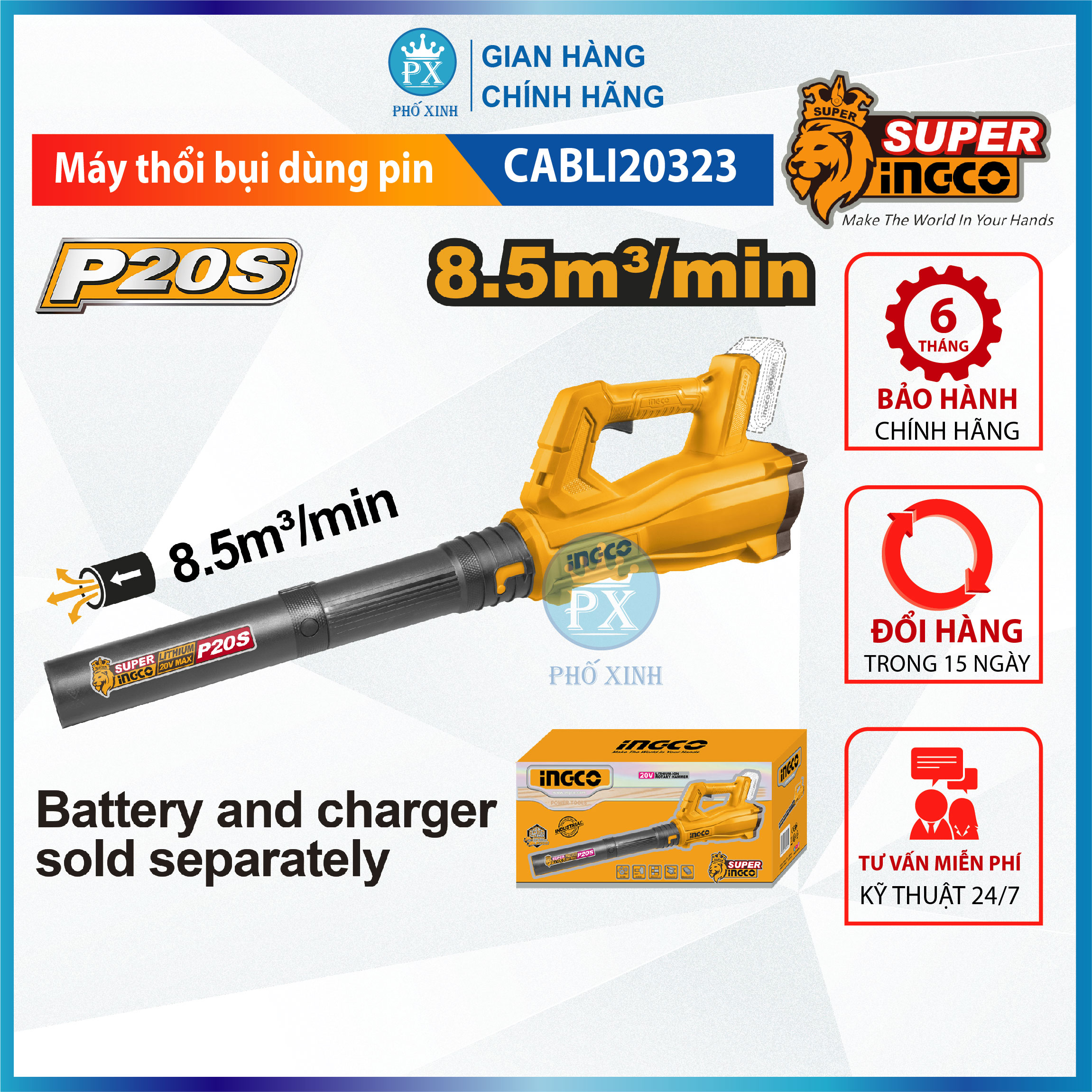 Giới thiệu Máy thổi bụi dùng pin Lithium 20V CABLI20323 chưa bao gồm Pin và Sạc