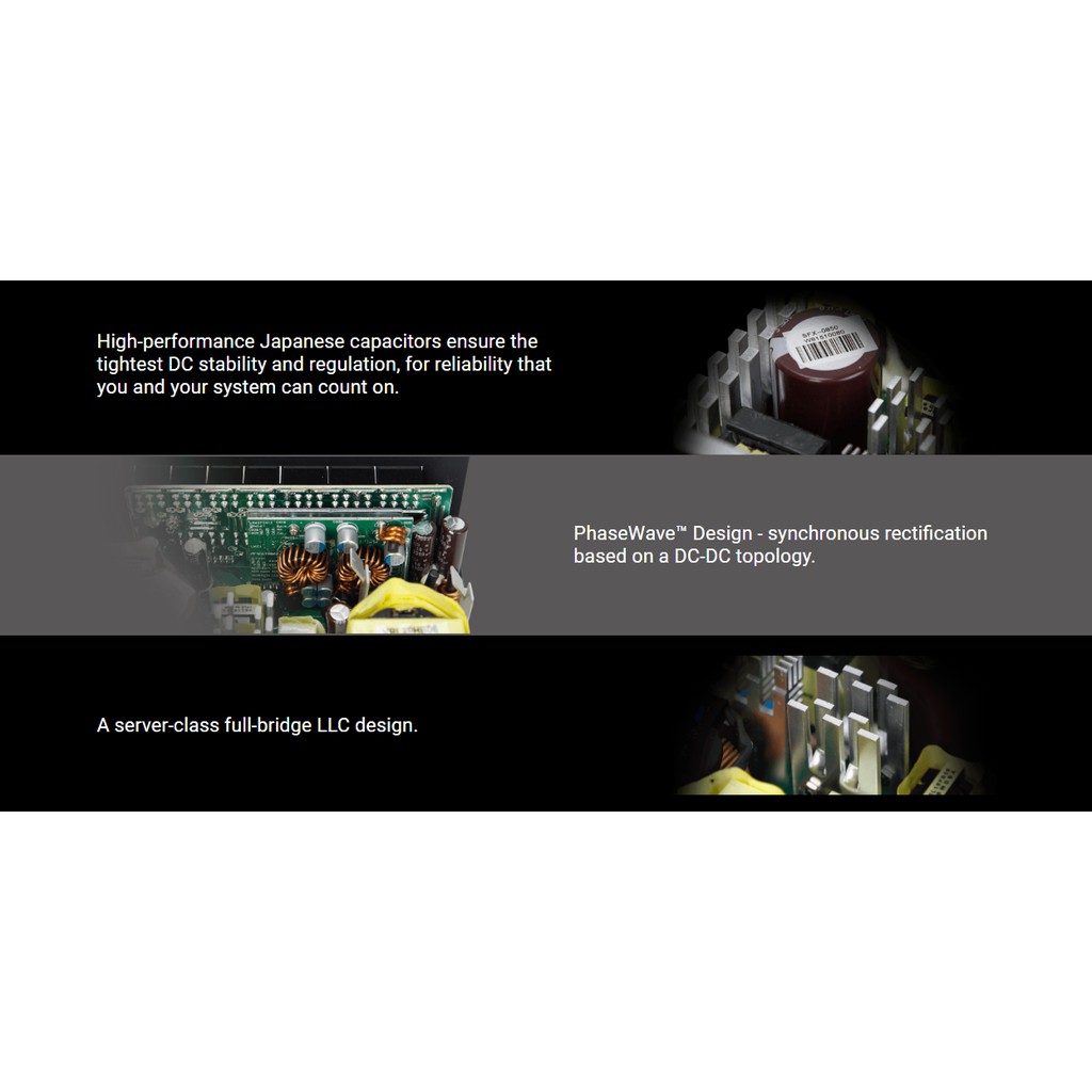 - Tụ điện 100% của Nhật Bản đạt được quy định điện áp chặt chẽ chưa từng có, độ gợn sóng và tiếng ồn thấp để tối đa hóa hiệu suất hệ thống của bạn.