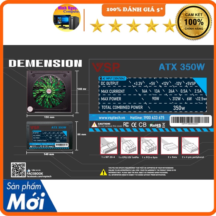 Máy tính & Laptop > Linh Kiện Máy Tính > Nguồn Máy Tính || Nguồn máy tính công suất thực VSP ATX 350W 4+4pin, 6+2pin chính hãng VSP bảo hành 2 nămCòn hàng