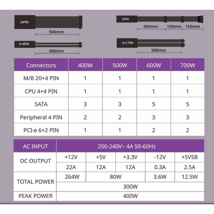 ✔️ THÔNG SỐ KỸ THUẬT Nguồn máy tính Cooler Master Elite V3 PC600 230V Box I PSU CoolerMasster Elite P600 230V - V3 Box - MPW-6001-PCABN1