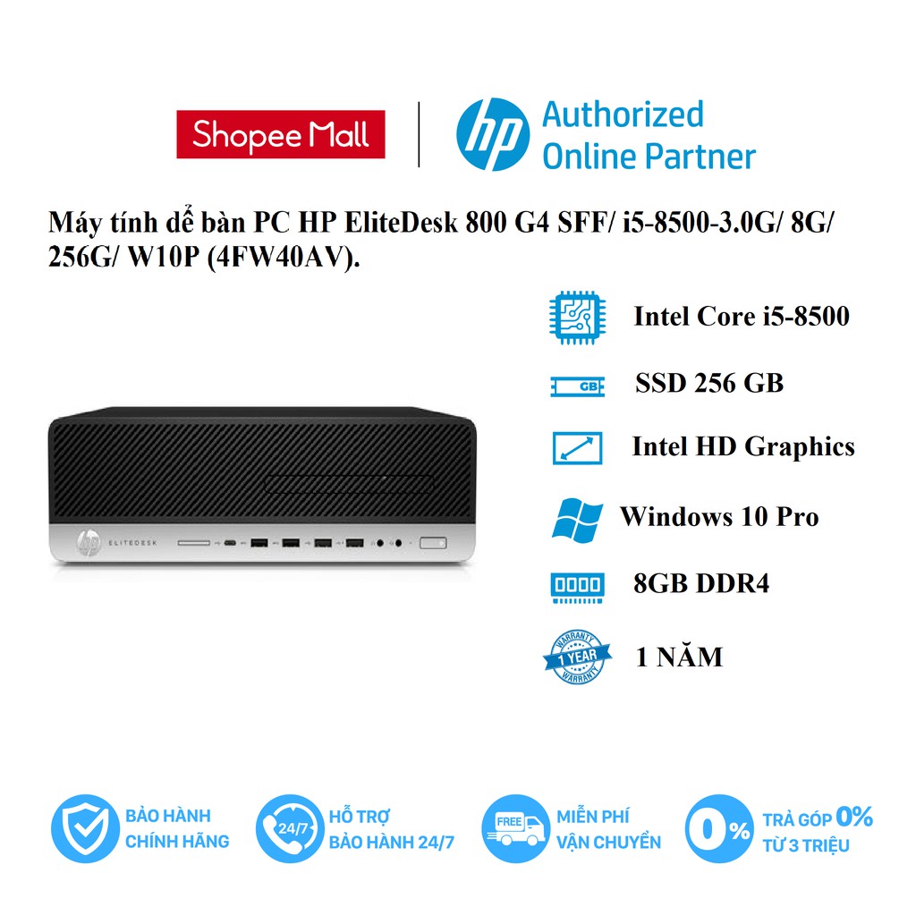 Máy tính & Laptop > Máy Tính Bàn > Bộ Máy Tính Bàn || [Mã ELMALL1TR giảm 5% đơn 3TR] Máy tính để bàn PC HP EliteDesk 800 G4 SFF/ i5-8500-3.0G/ 8G/ 256G/ W10P (4FW40AV).Còn hàng