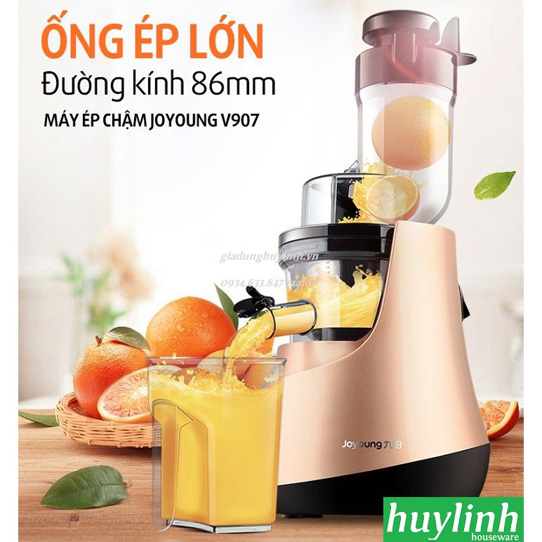 - Máy Ép Chậm Đa Năng Joyoung JYZ-V907 là dòng máy ép trái cây chuyên dụng cao cấp của thương hiệu điện gia dụng Joyoung. Với máy ép chậm này, bạn có thể dễ dàng chuẩn bị được các loại nước ép trái cây ngon lành và bổ dưỡng nhất cho gia đình, người thân và bạn bè của bạn trong khoảng thời gian ngắn nhất. Miệng ép có đường kính lớn lên tới 86 mm được thiết kế thẳng đứng giúp bạn dễ dàng ép nguyên trái táo hoặc cam mà không cần tốn công thái nhỏ.