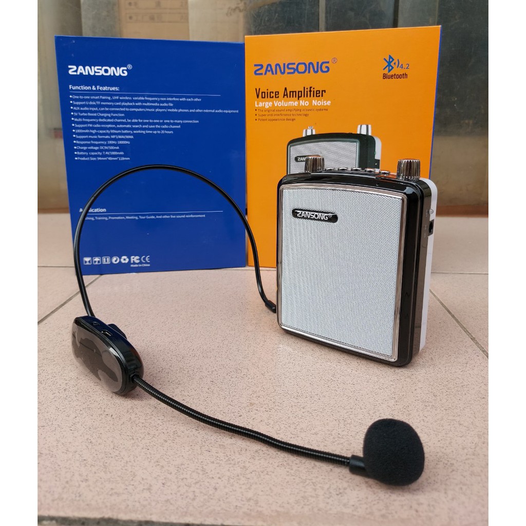 trợ giảng Zansong M88, sản phẩm có chất lượng khá tốt với nhiều tiện ích: trợ giảng - nghe nhạc - nghe radio...Đặc biệt loa sử dụng kết nối wireless với micro không dây và phạm vi kết nối có thể lên đến gần 50 mét, loa còn có thể nghe nhạc qua kết nối bluetooth với các thiết bị như : điện thoại - laptop - máy tính bảng ...