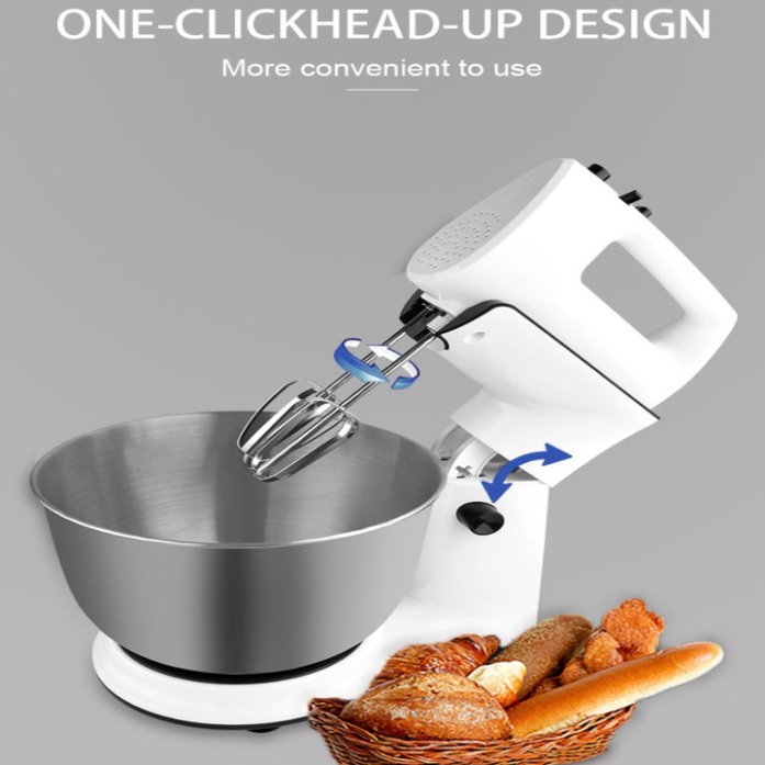 - Máy Có thể sử dụng kiểu để bàn hoặc cầm tay linh hoạt, đáp ứng nhu cầu của mọi người dùng. Đặc biệt, được thiết kế cải tiến, chống mỏi tay khi dùng lâu (trong trường hợp bạn nhấc máy ra khỏi thân trụ để sử dụng đánh trộn nguyên liệu).