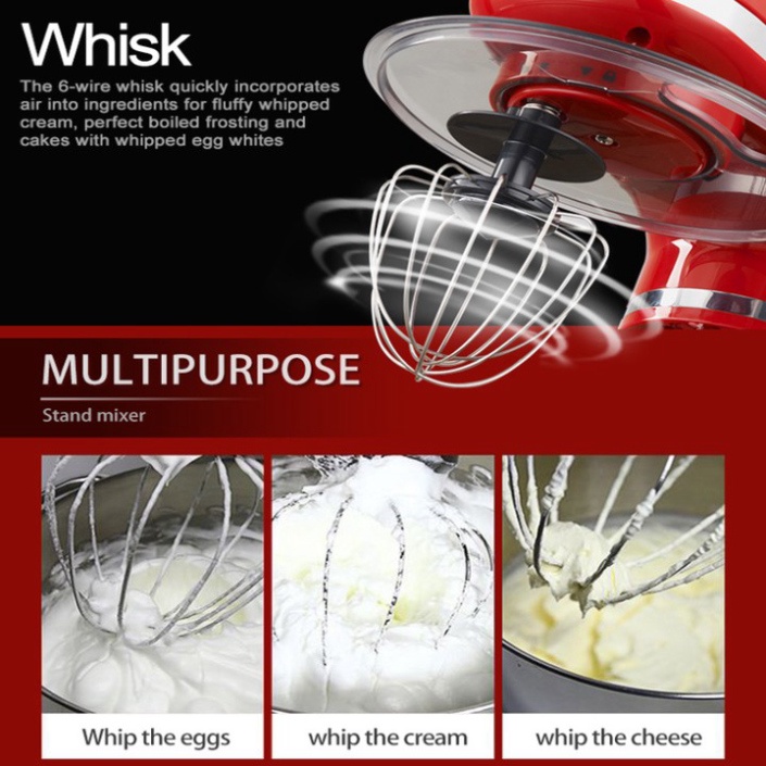 - Máy đánh trứng, nhồi bột, trộn kem cũng như nhào trộn các nguyên liệu hỗ trợ một cách hiệu quả và nhanh chóng trong việc làm bánh và chế biến thức ăn. Ngoài công dụng trộn bột và đánh trứng, máy trộn còn có thể đánh bông các loại kem tươi, trộn thịt…